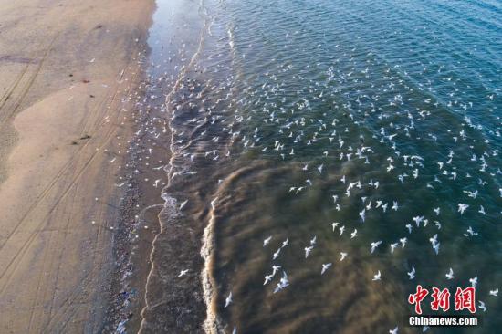 资料图:海鸥在海岸边飞舞。 邹刚 摄