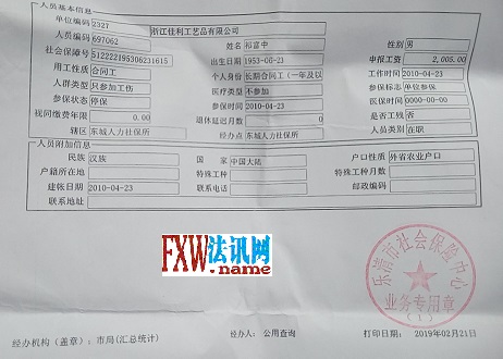 乐清市社保中心证明,公司只给祁富中缴了工伤保险。显示其为长期合同工