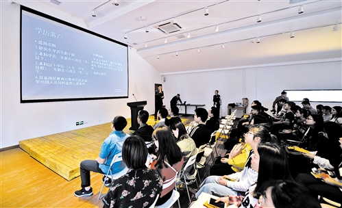 西安市公安局高新分局户政大队民警为企业和大学生代表讲解西安市学历落户政策。 新华社记者 李一博摄